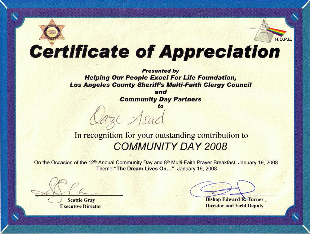 Awards (Lead instructor is recipient of Commendations from the following organizations)